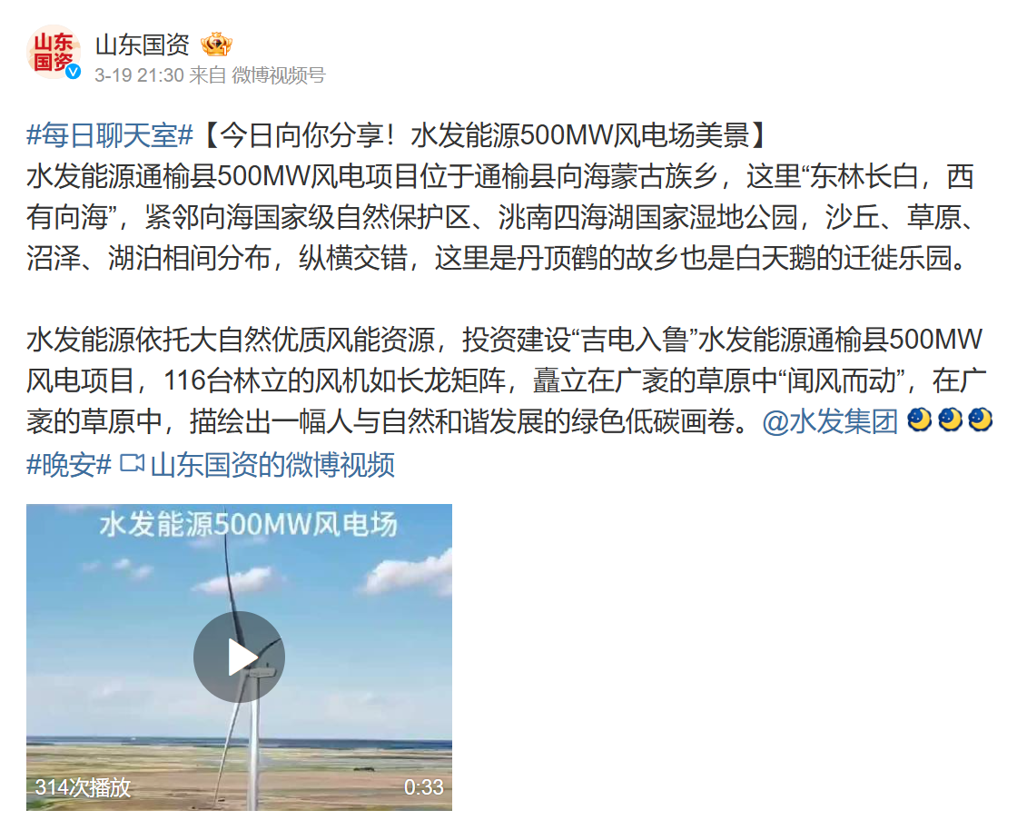 【山东国资】今日向你分享!304永利500MW风电场美景