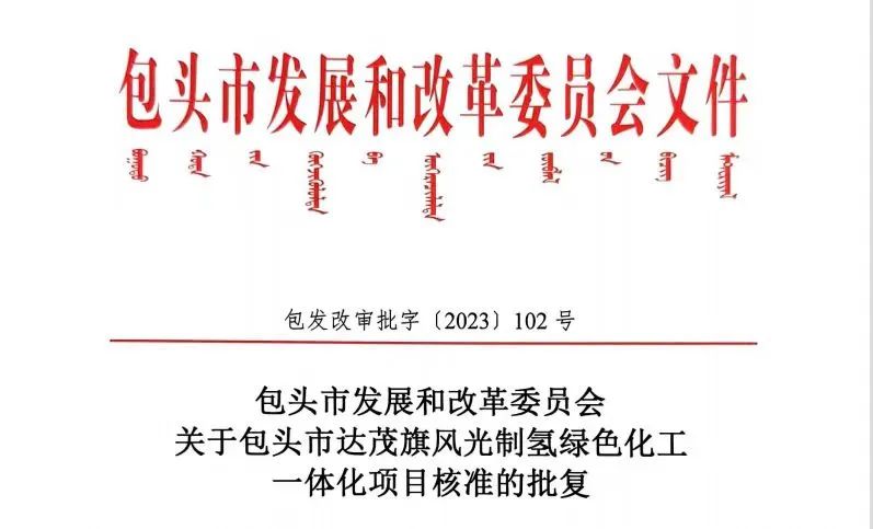 喜报!304永利包头市达茂旗风光制氢绿色化工一体化项目获核准批复