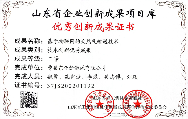 304永利曹县东合公司荣获山东省企业创新成果项目库“技术创新优秀成果二等奖”